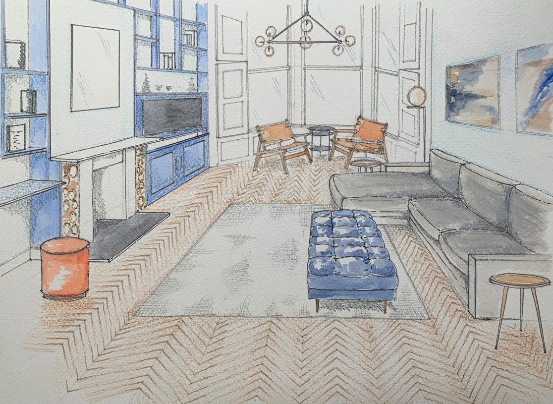 In Teresa’s final presentation (complete with lovely fabric and paint samples), when we saw her beautiful paintings of the room with all the furniture in place, it was like she had opened up our heads and tidied up years of mess in there!