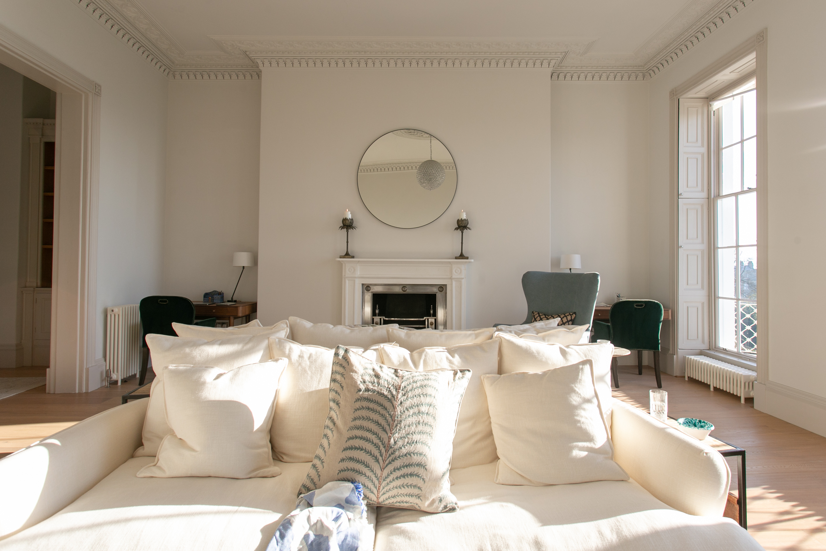 This has been a gorgeous project. The furnishing of a spectacular apartment in Bath with expansive spaces, high ceilings and views down into Bath and the park. It started out with some key pieces to make it comfortable liveable, and via a positive and relaxed working relationship between us and the client, has turned into some involving a lot more, including adding in a lot of finishing details.
